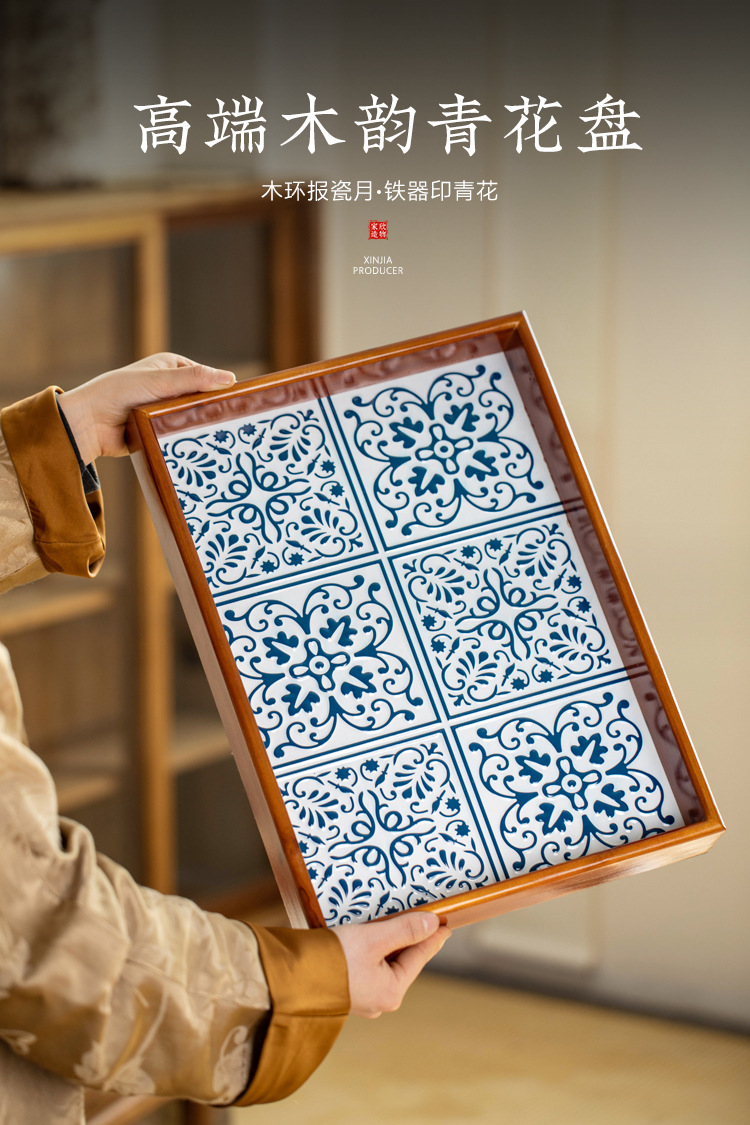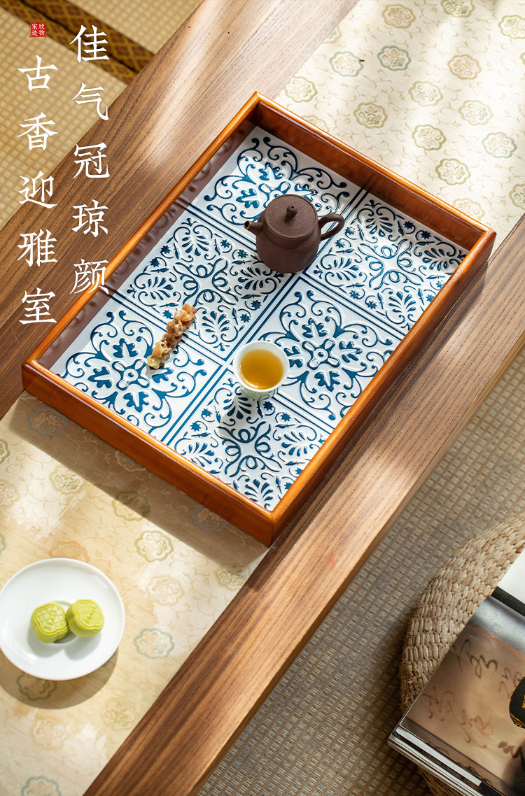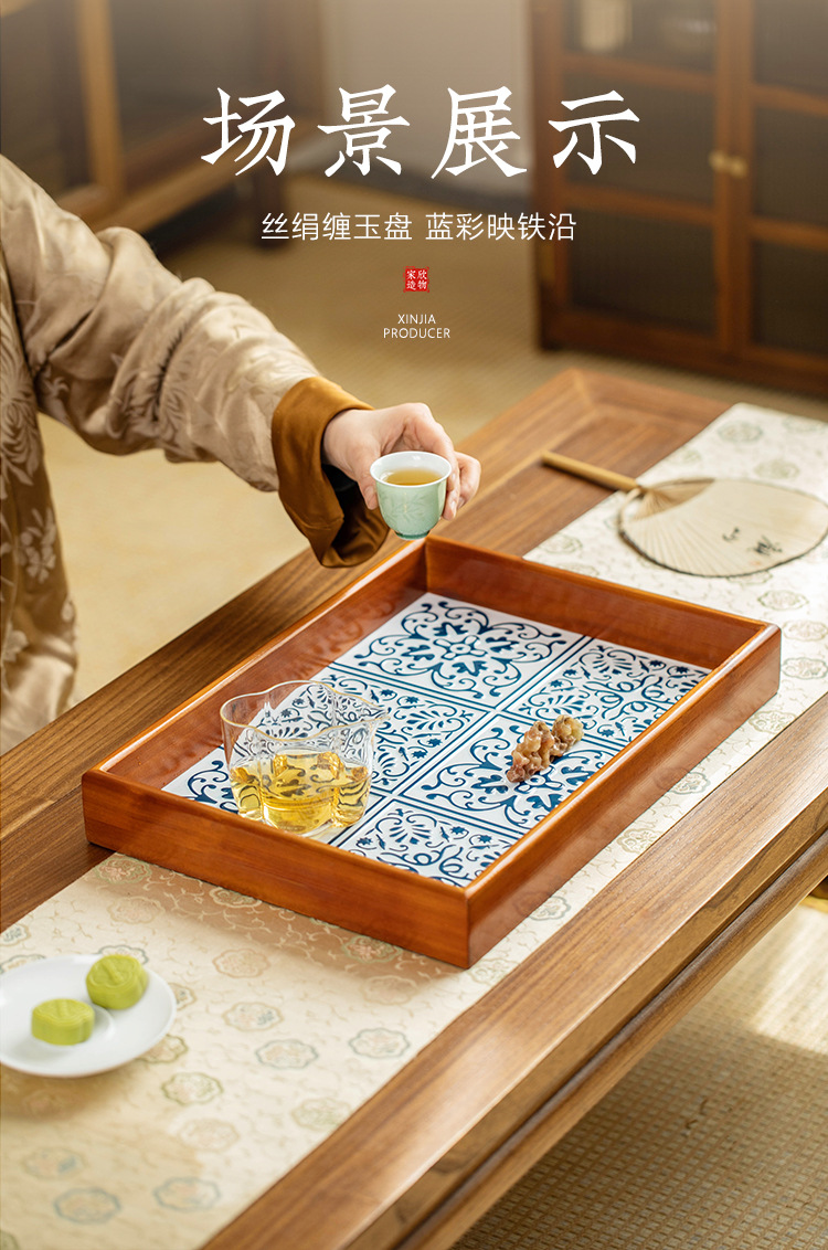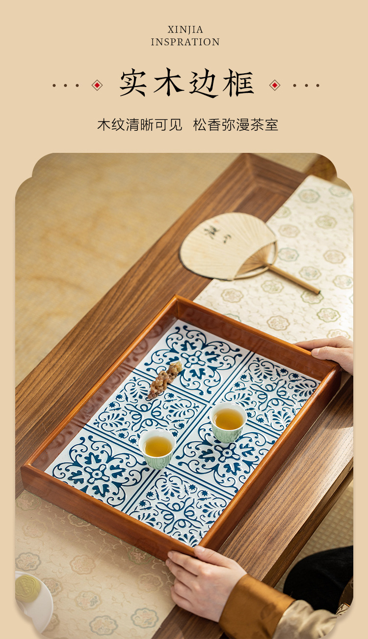 新中式实木长方形茶盘托盘家用客厅轻奢餐盘点心盘酒店商用果盘高颜值收纳盘批发首饰收纳放茶杯咖啡杯玻璃杯可定制酒店民宿咖啡馆酒吧定制批发