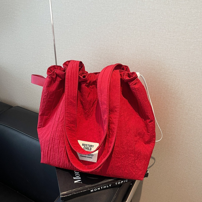 しわ大容量ファッション韓国版純色小清新結びショルダーバッグ女性2025新型斜めショルダーバッグ女性