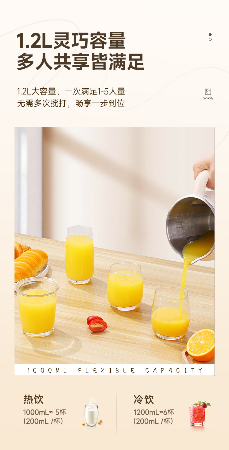 SUPOR 家庭用豆乳メーカー ブレーカーマシン フィルター不要 全自動 多機能 低騒音 ブレーカー豆乳メーカー