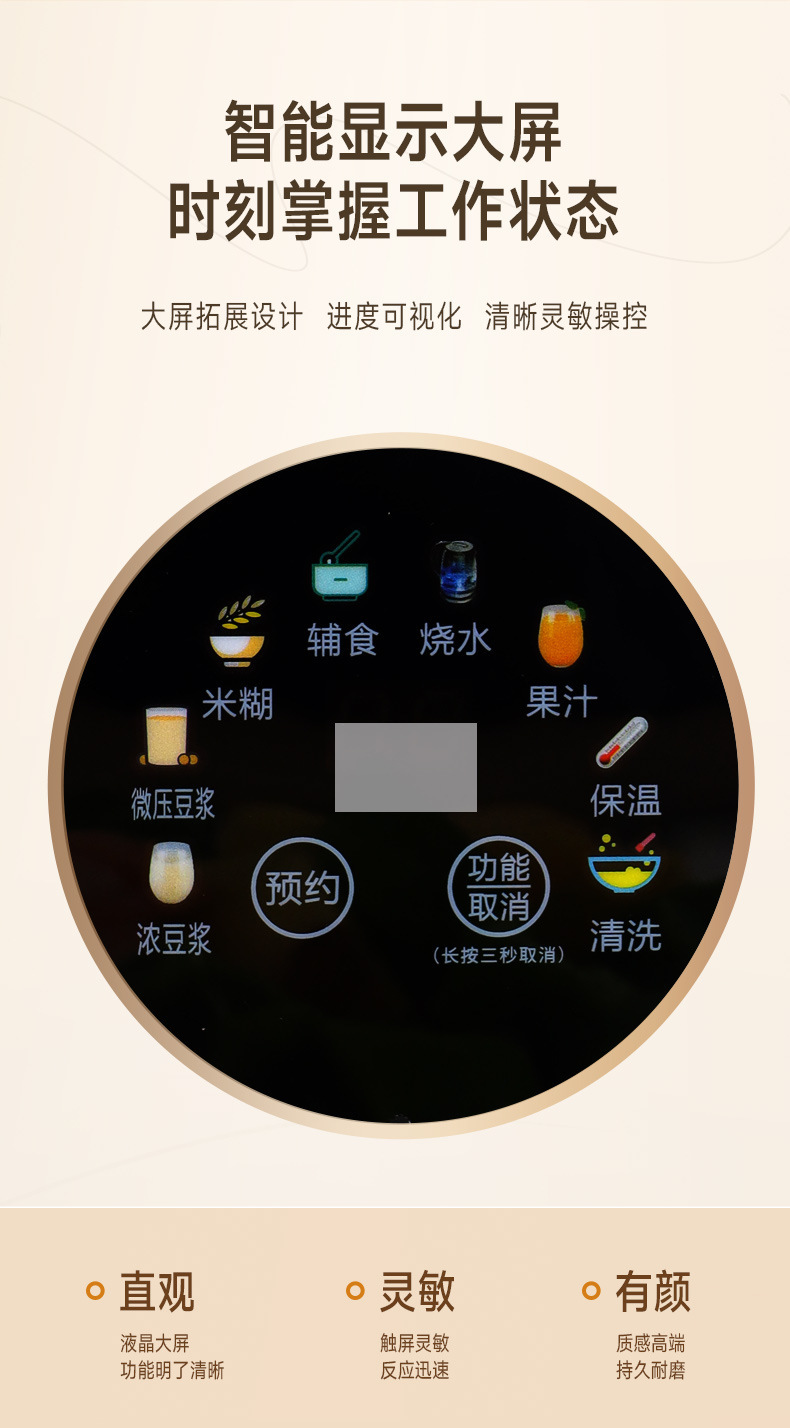 触屏清洗多功能不锈钢豆浆机破壁机免煮免过滤4-5人米浆机米糊