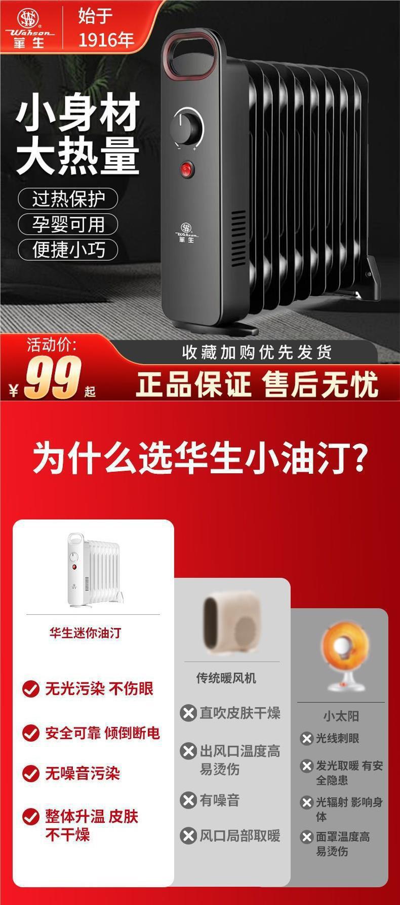 小油汀取暖器家用办公室暖脚迷你暖气片烤火炉冬季取暖电暖气片暖
