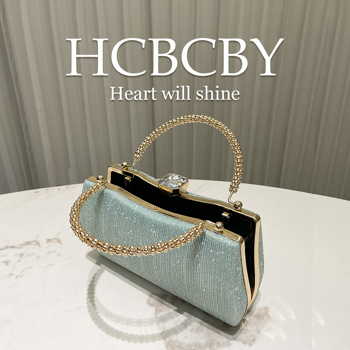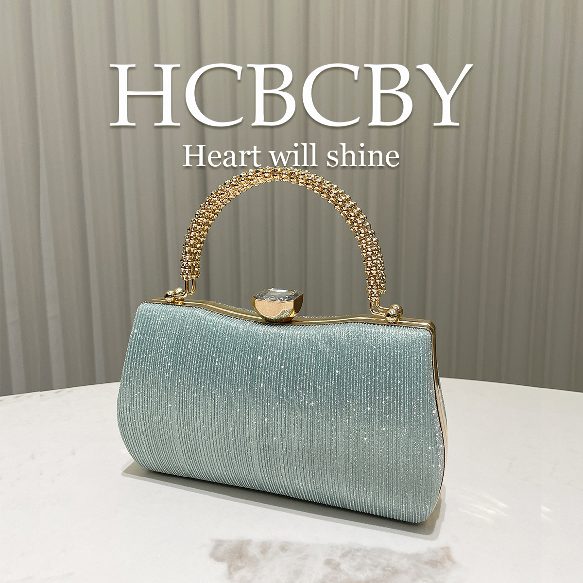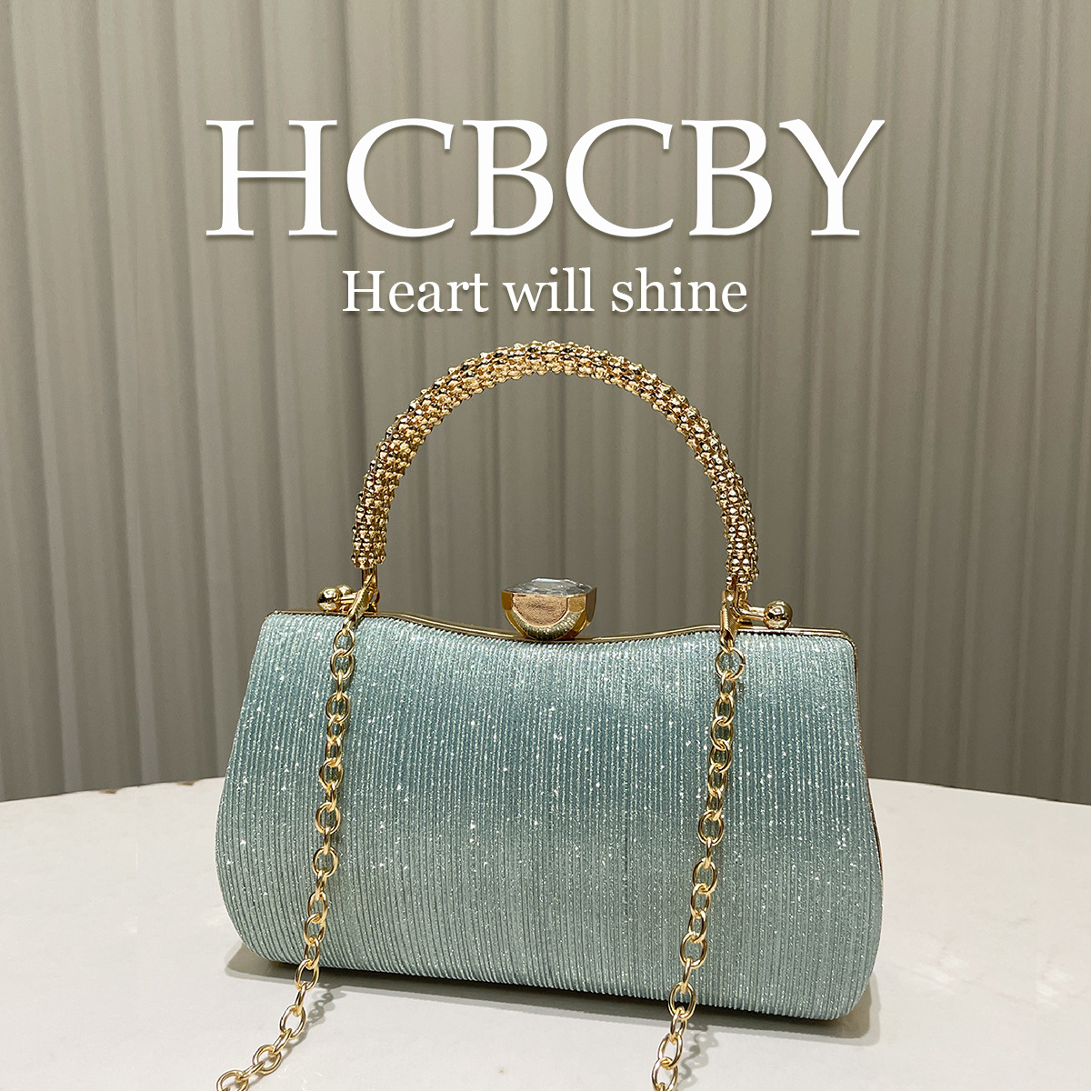 ミントグリーンのシンプルでエレガントなグリッターストライプボックス型クラッチバッグレディースファッション気質ハンドバッグイブニングバッグ