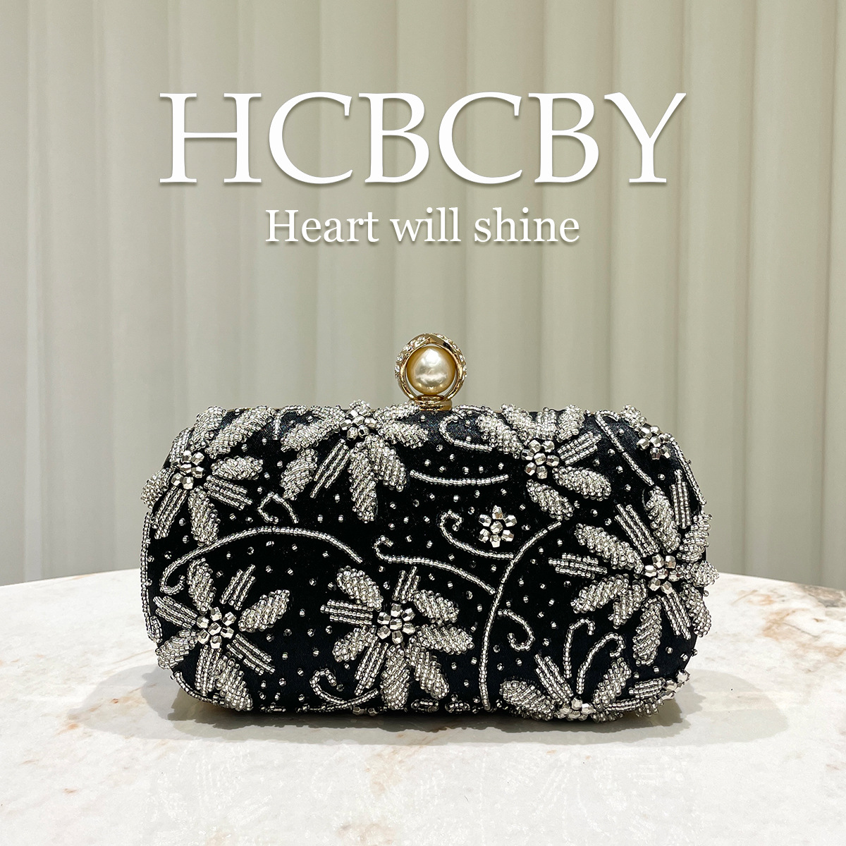 黑色闪光优雅重工钉珠珠绣晚装包名媛时尚高级感晚宴包旗袍手拿包