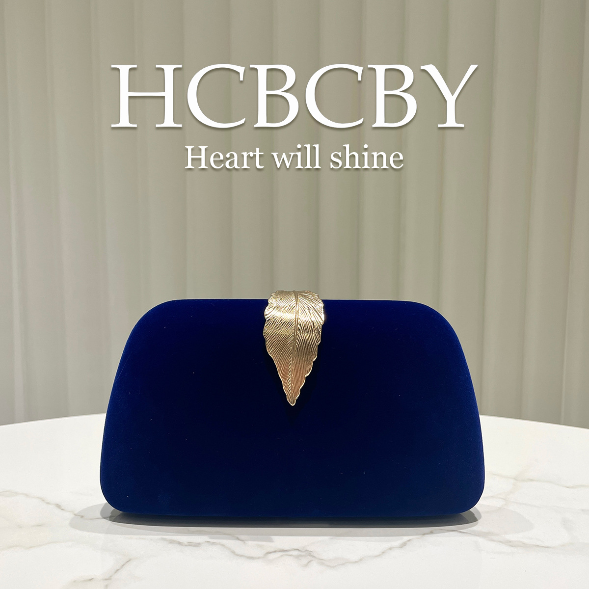 深蓝色复古丝绒面料叶子搭扣晚宴包女士时尚气质手拿包名媛小方包