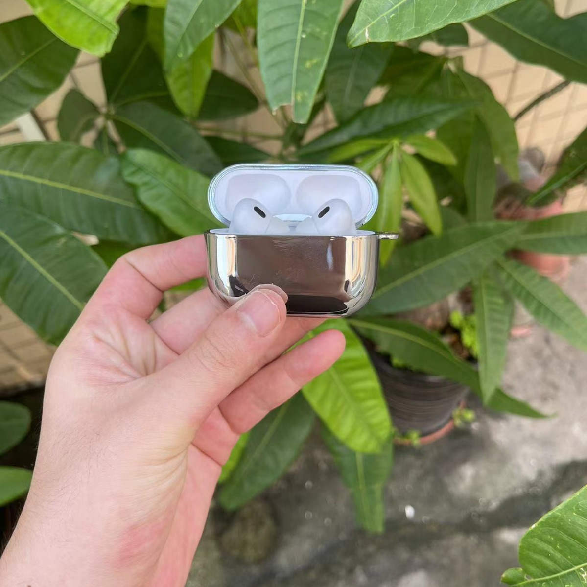 ハイエンド電気メッキ光沢のあるヘッドフォンケース AIRpodspro2 ヘッドフォンケース ins Apple ユニバーサルヘッドフォンケース保護カバー