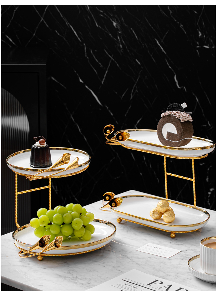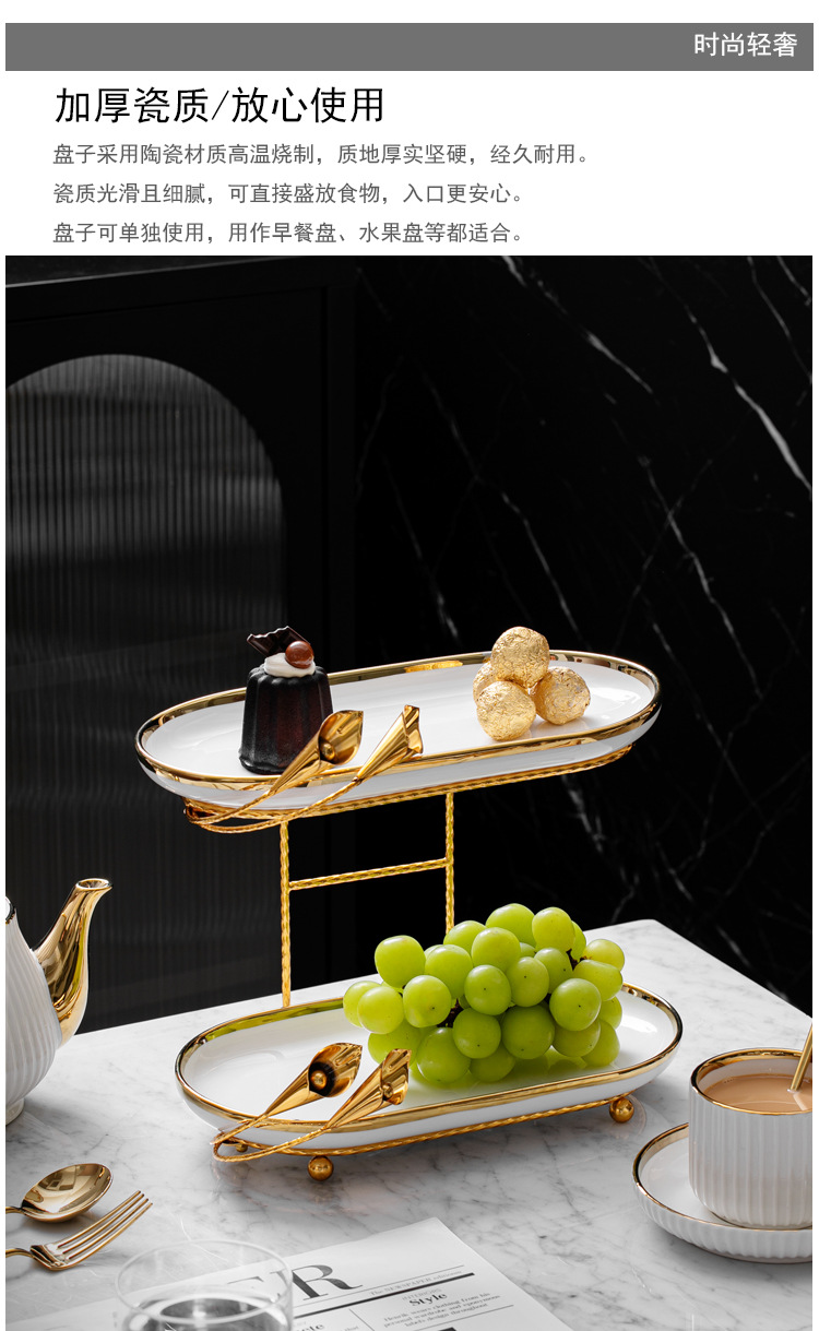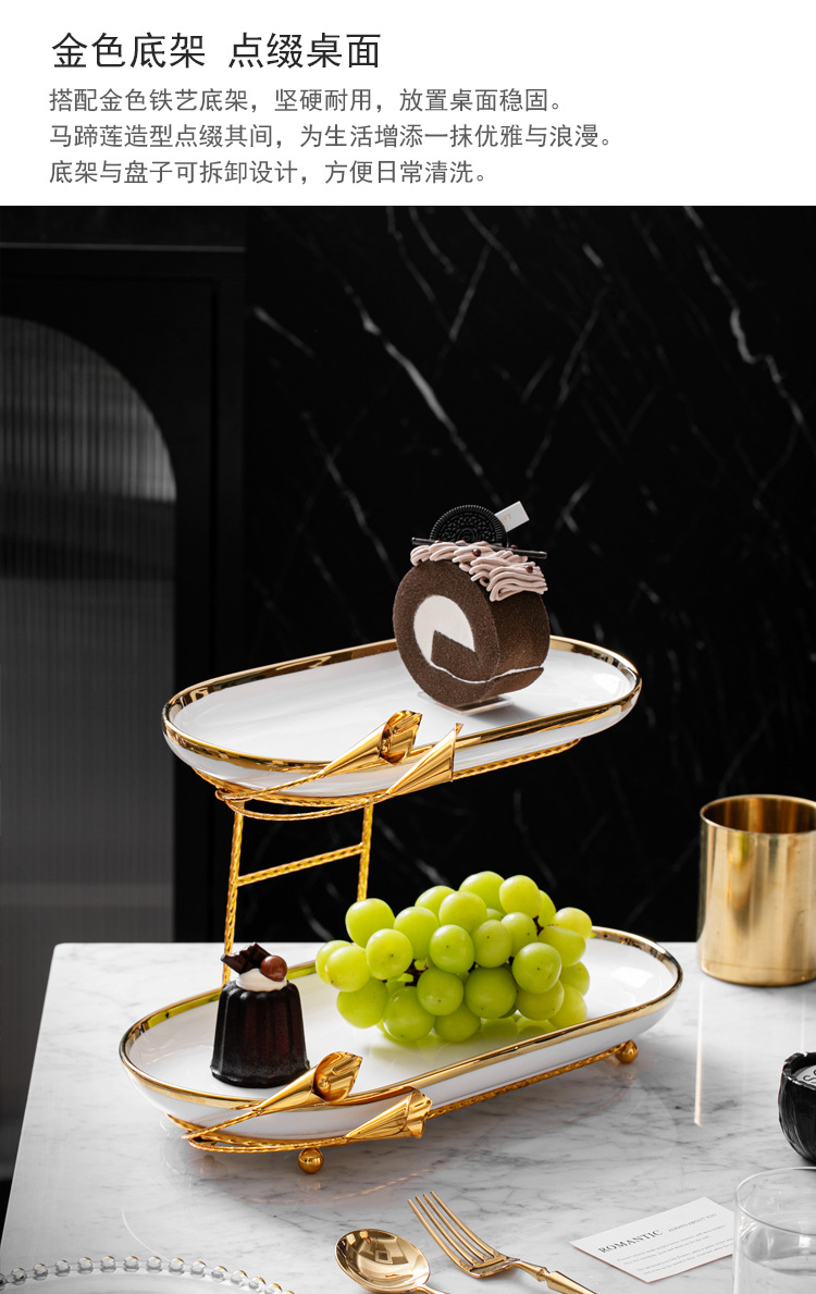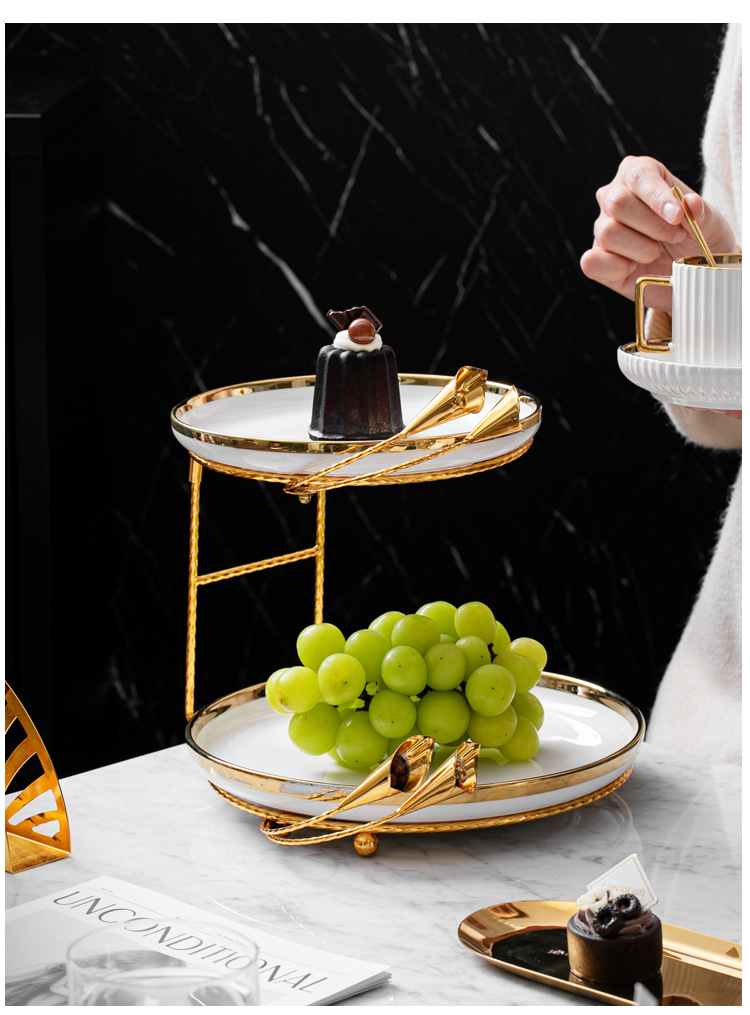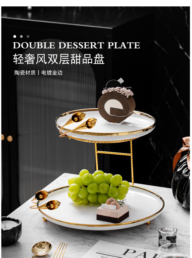 北欧風陶磁器二重果物皿軽豪華高級感金辺家庭用ドライフルーツ皿小食皿卸売り