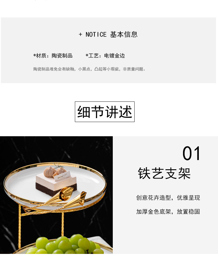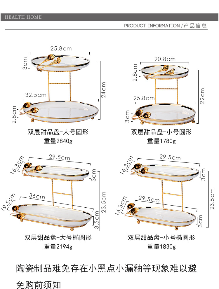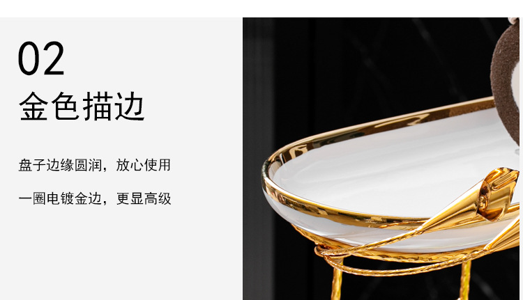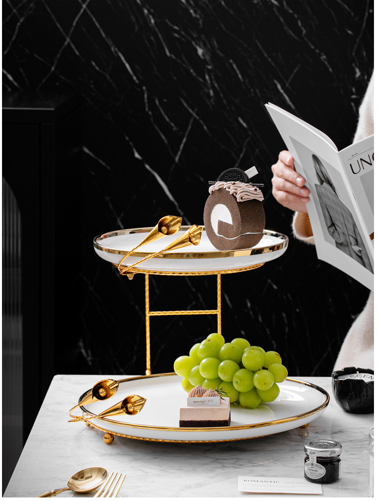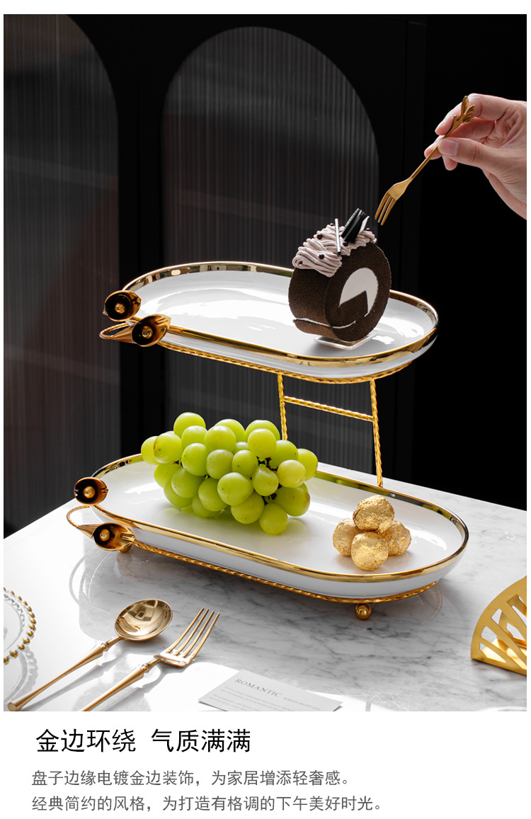 北欧風陶磁器二重果物皿軽豪華高級感金辺家庭用ドライフルーツ皿小食皿卸売り
