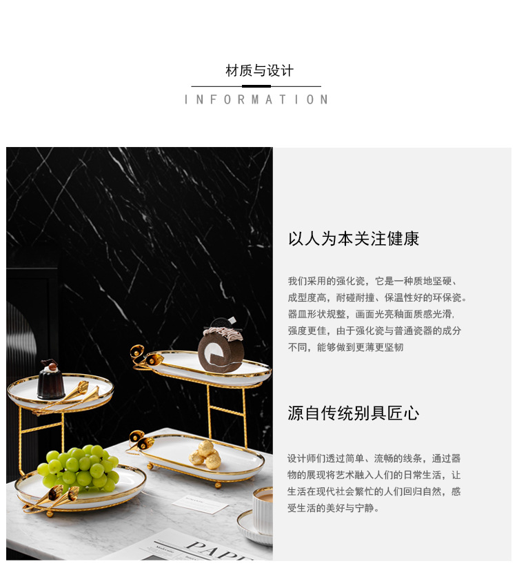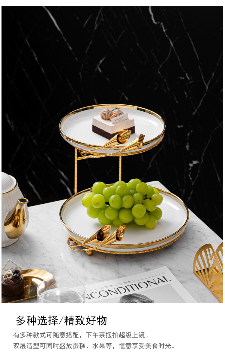 北欧风轻奢陶瓷果盘客厅零食水果收纳盘多层高级感干果盘乔迁礼品