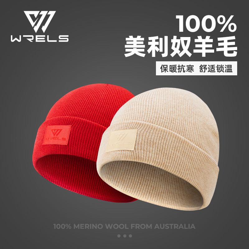 WRELS美利奴羊毛运动帽子男加厚保暖护耳防风百搭女秋冬针织冷帽