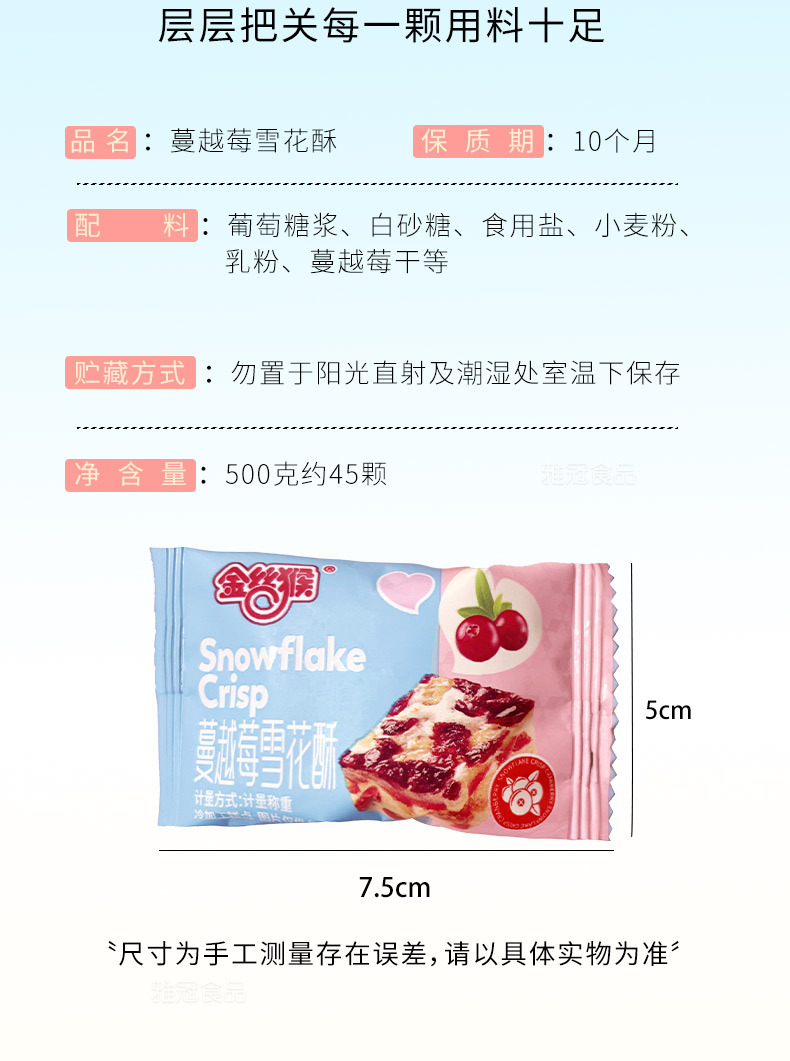 梱包仕様 ゴールデンモンキー クランベリースノーフレーククリスピー 500g/袋