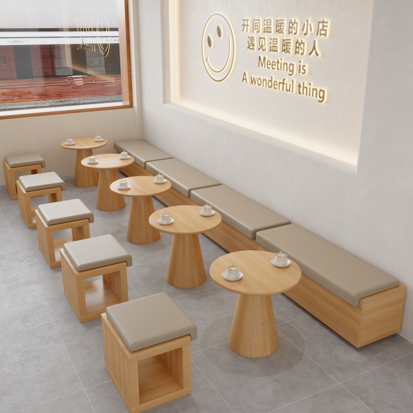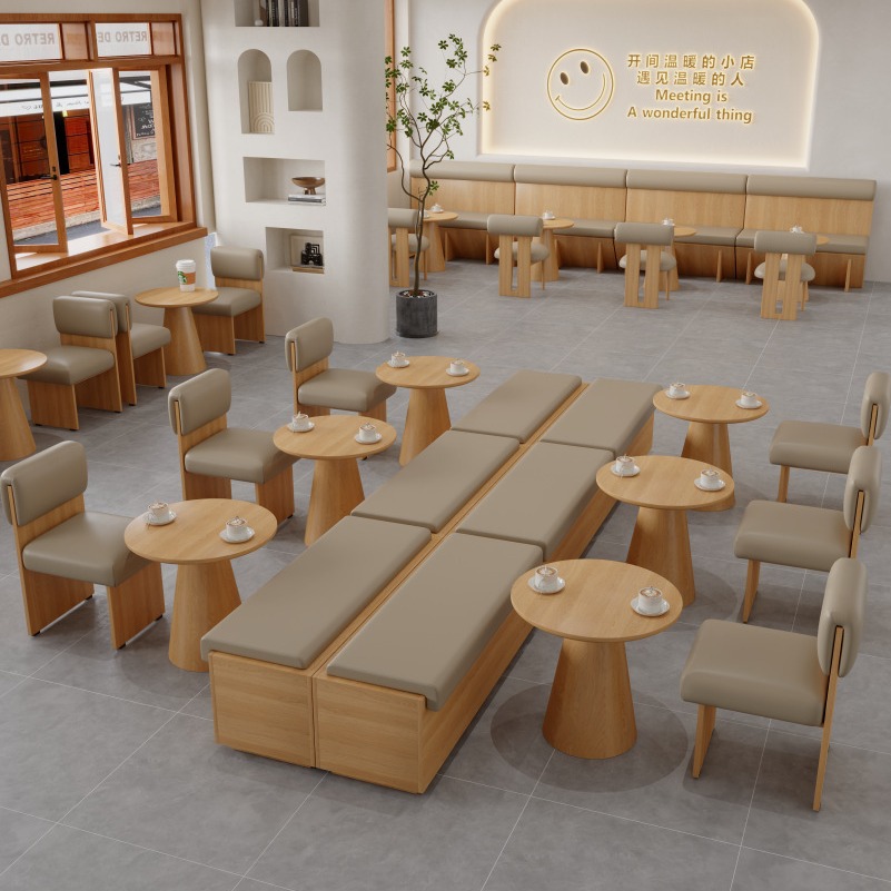 カスタマイズされたシンプルな食堂レストランのテーブルと椅子モダンな無垢材のミルクティーショップデザートスナックバーガーショップレストランの壁のベンチ