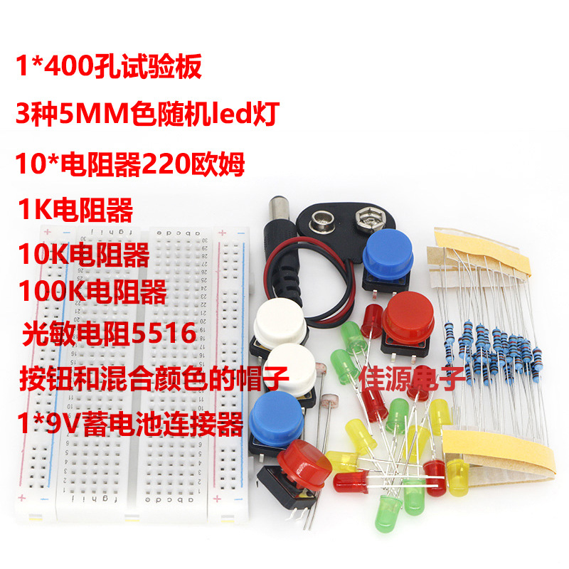 ウノR3开発ボード学习キット部品パッケージledライト付き400穴パンボタン抵抗デュボンライン