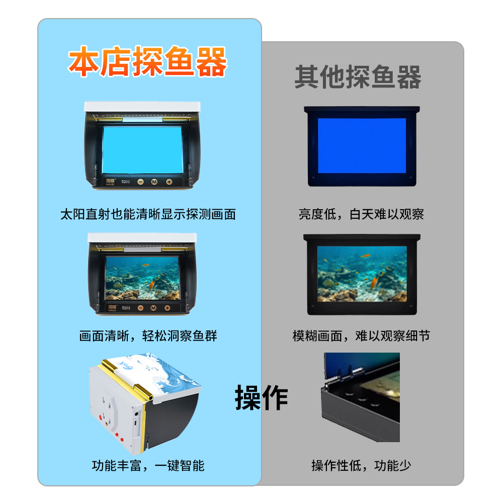 Haiqi 5inch 4.3inch Spark v6 モニター画面超クリアビジュアル魚探し Haiqi 防水魚探カメラ