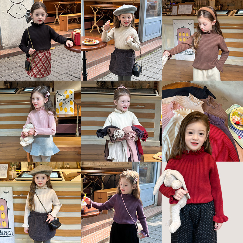 エイモベイベイ 女の子用フリルセーター 冬の新作 子供用 エレガントで甘いインナーウェア ニットトップス 子供服