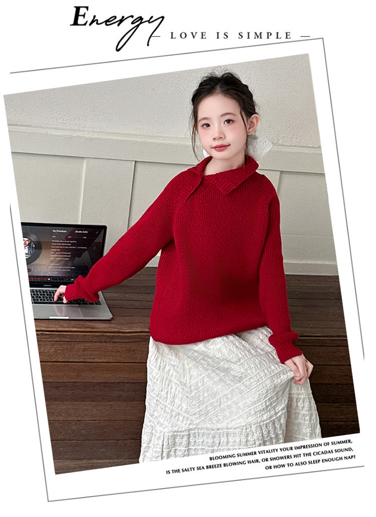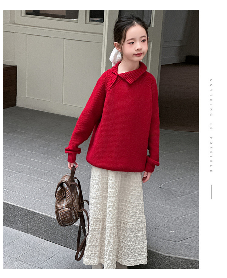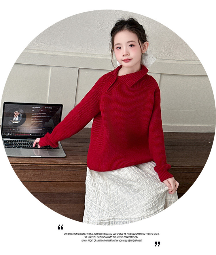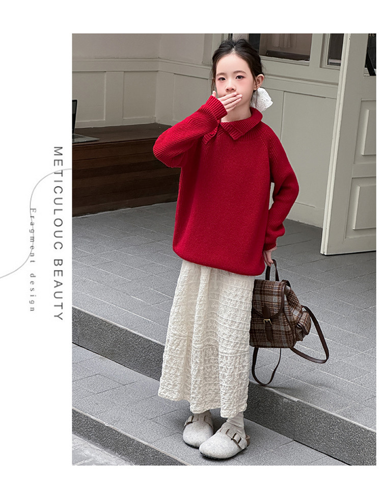儿童毛衣2025秋冬新款中大童套头毛衣女童毛衣针织衫红色年服