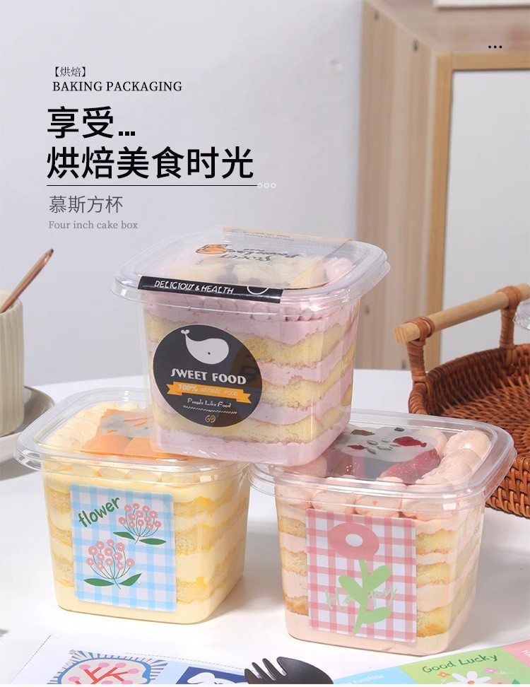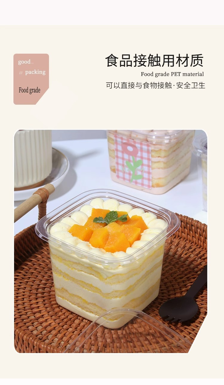 ティラミス箱角形使い捨て千層ムースクリームフルーツケーキ透明包装カップデザート包装