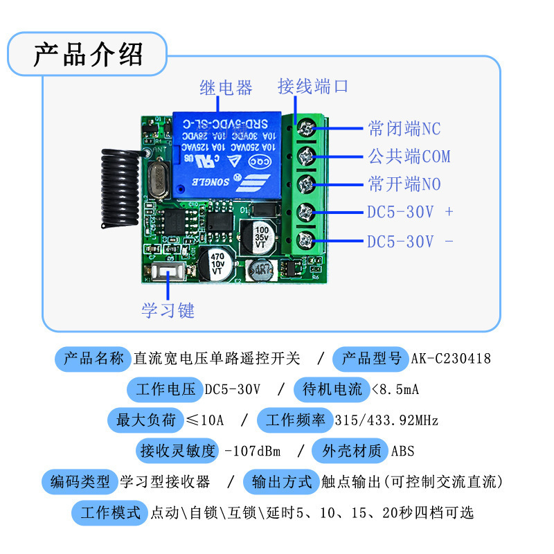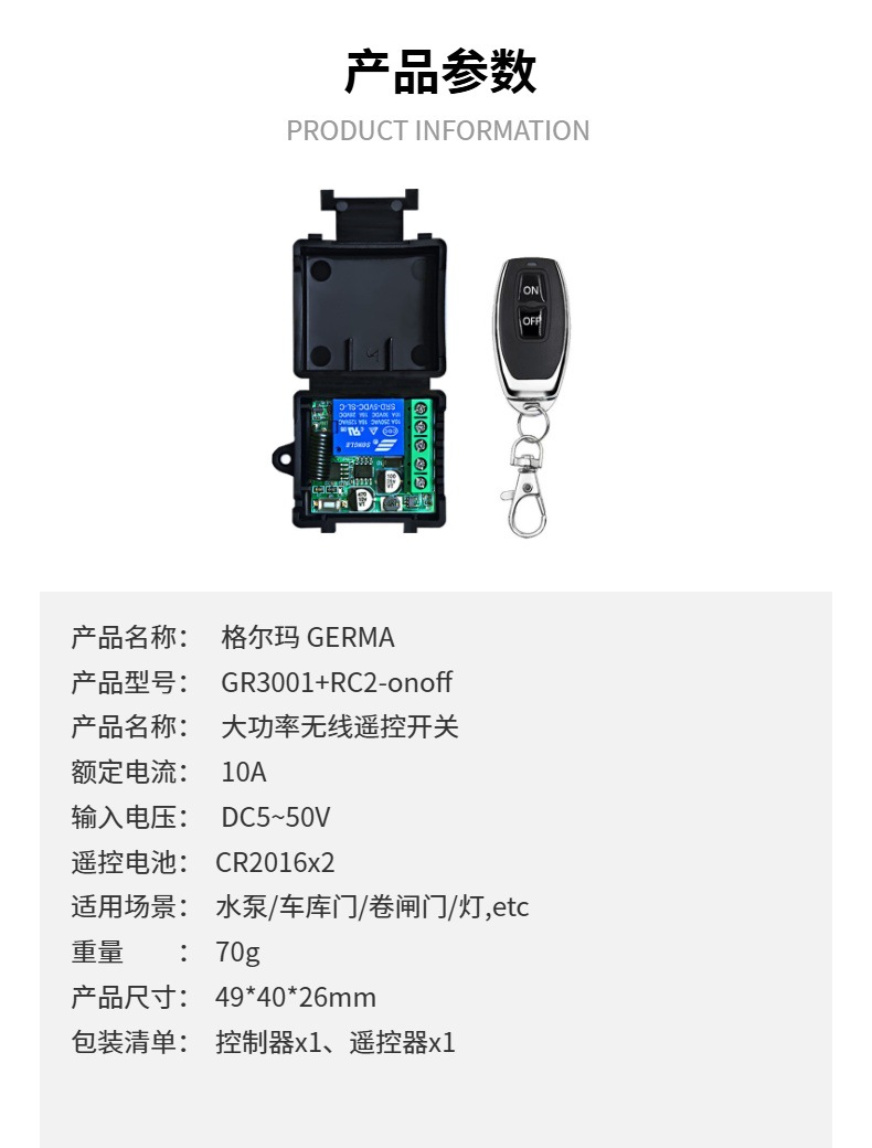 GERMA 5V12V24V30V 433mhz 宽电压无线遥控开关 灯具 门禁LED汽车