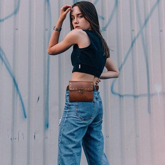 2025 新しいバッグ女性のヨーロッパとアメリカのパンク女性のバッグレトロ 2 色屋外携帯電話コインスポーツミニウエストバッグ
