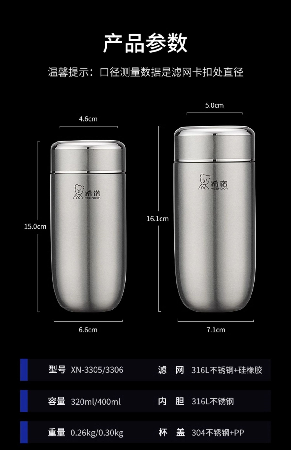 シーノ保温カップ316L大容量男性女性高級車載カップ携帯フィルター付きギフトカップ礼箱