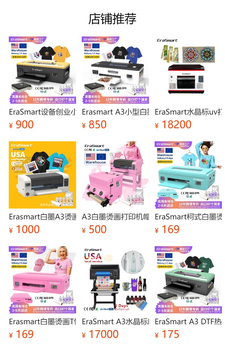 EraSmart設備創業小本A3デジタルプリント印刷機DTFプリンタ白墨熱転写機