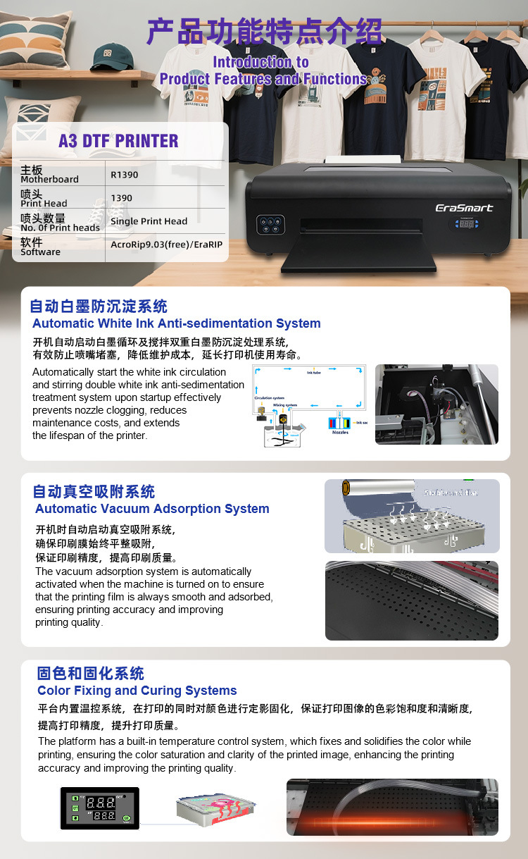 EraSmart越境A3白墨熱転写機30cmスウェットシャツ半袖dtfデジタル印刷機熱転写プリンター