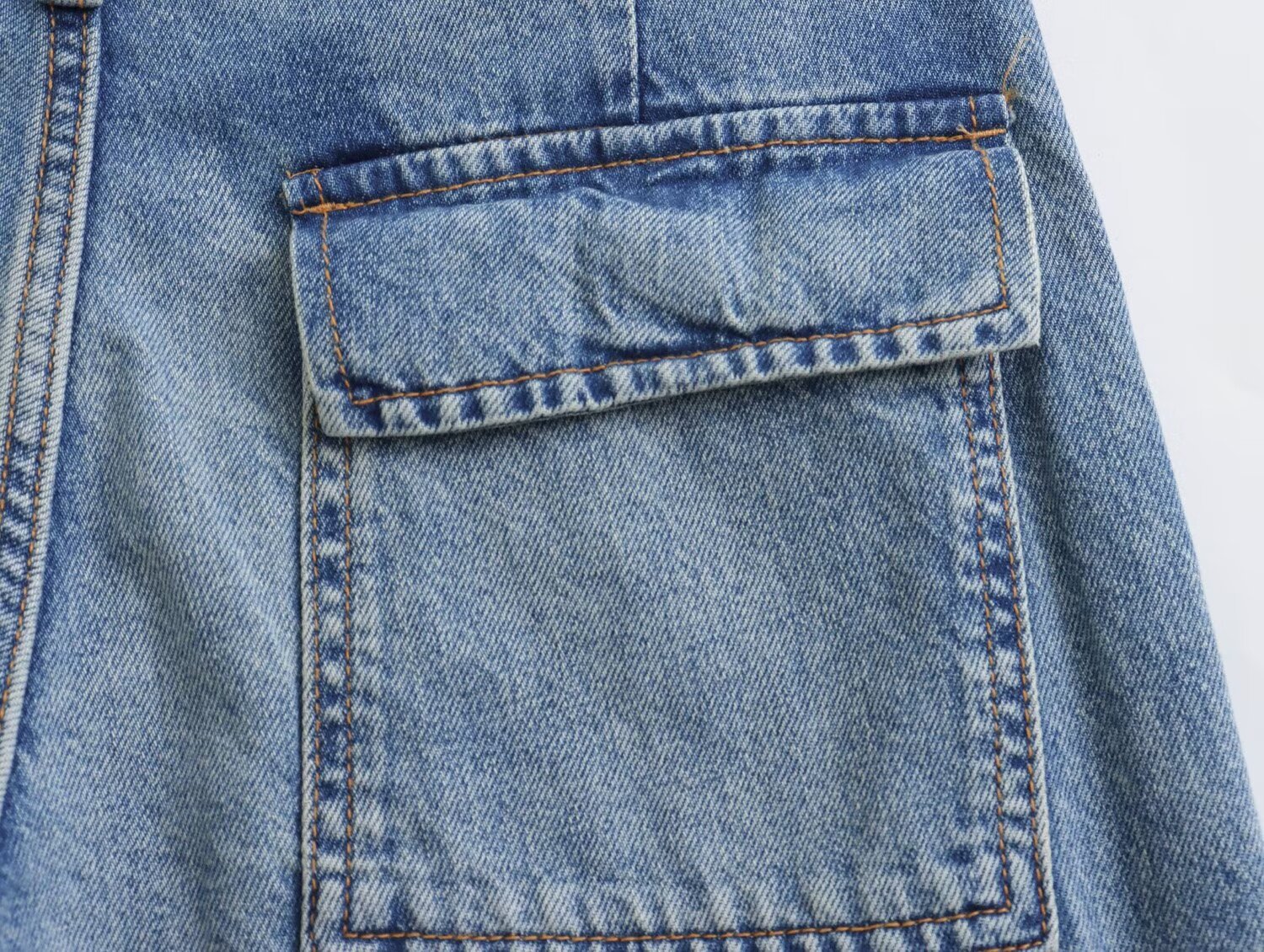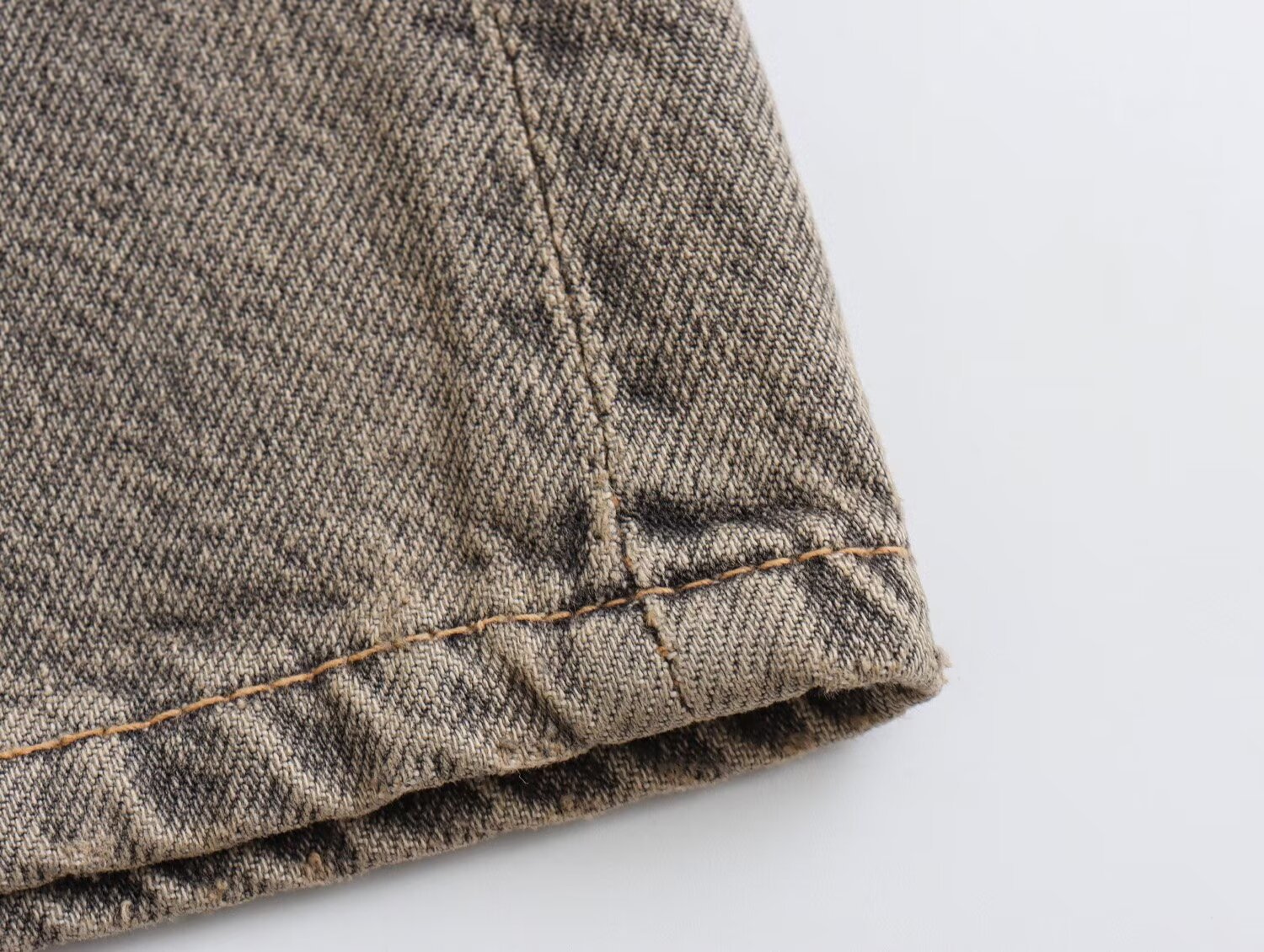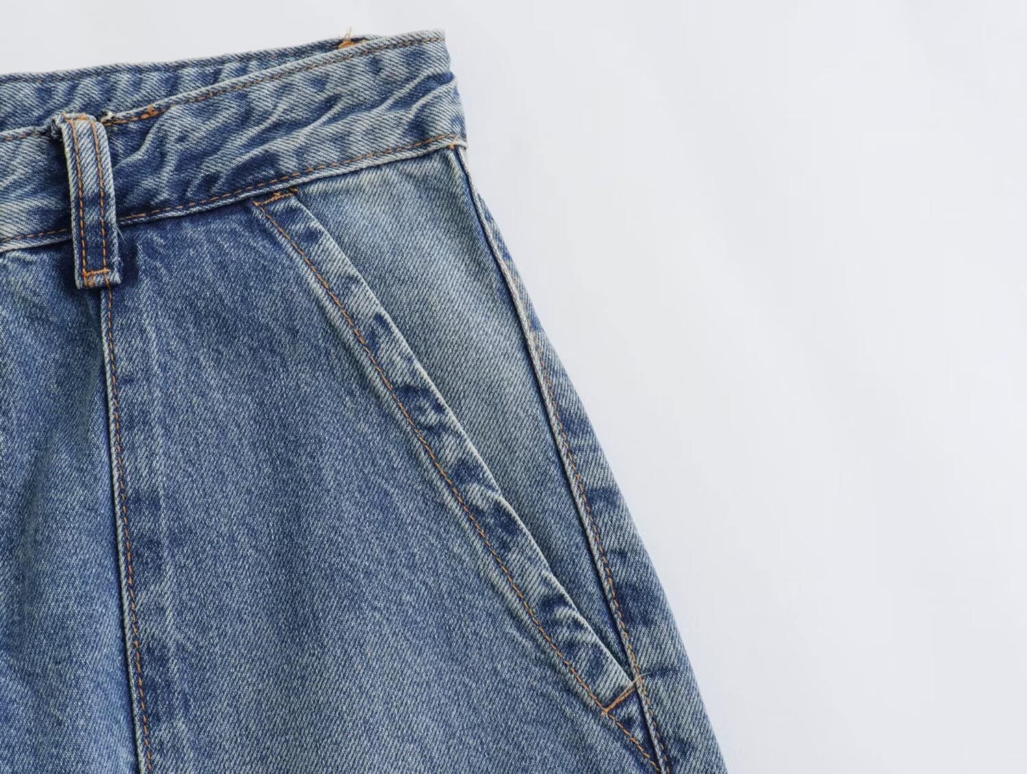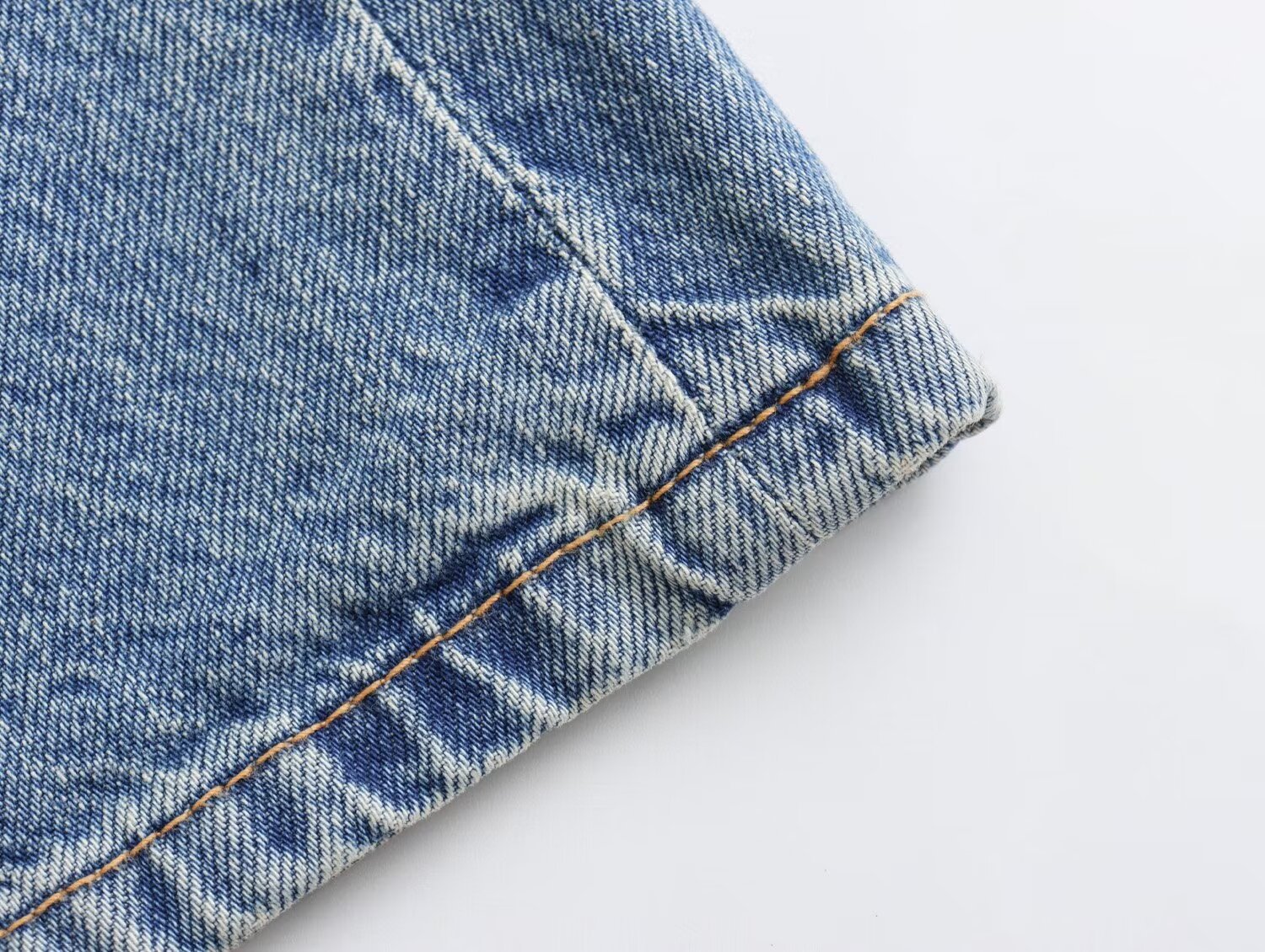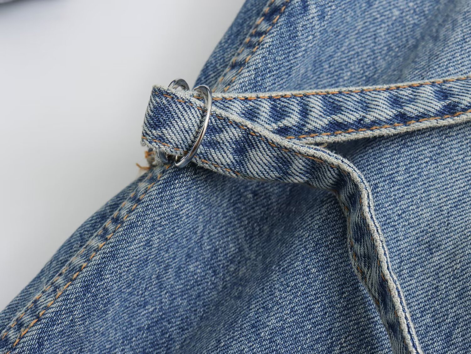 実物写真-襟付きデニムの紐付きツーピースセット、欧米風クロスボーダーファッション、人気のファッションカジュアルレトロ万能セット