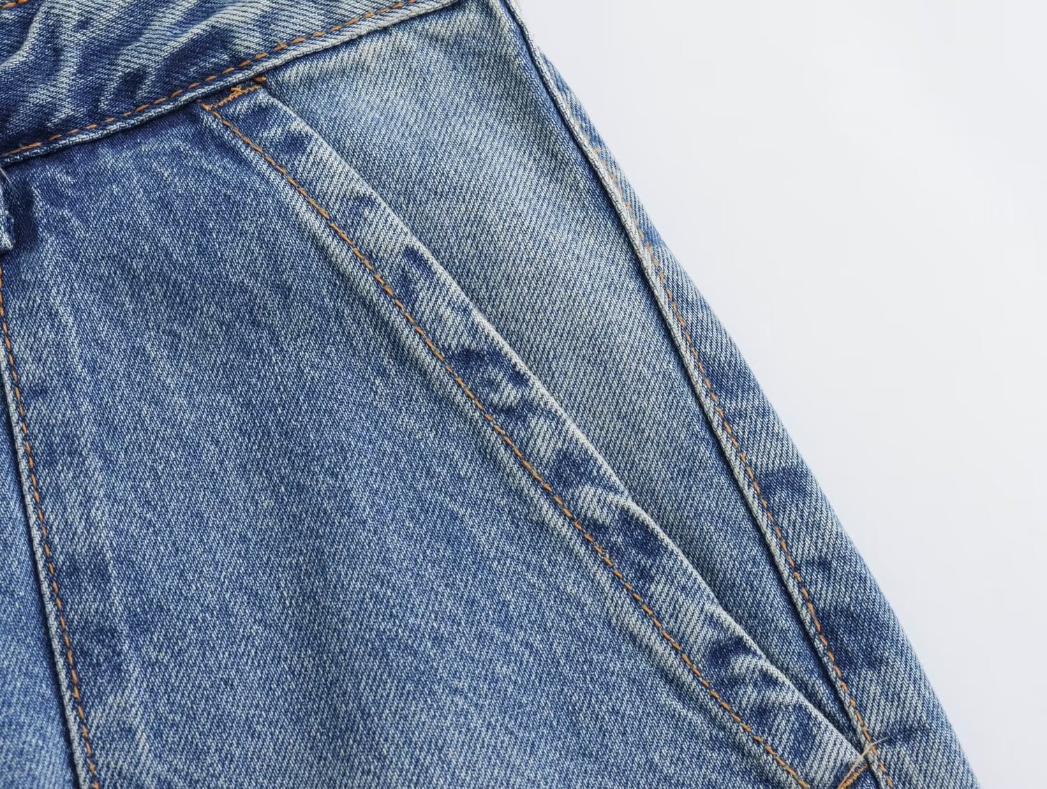 2025春の新型女装欧米風ファッションレジャー工装金中腰ジーンズ欧米国境を越えたジーンズ