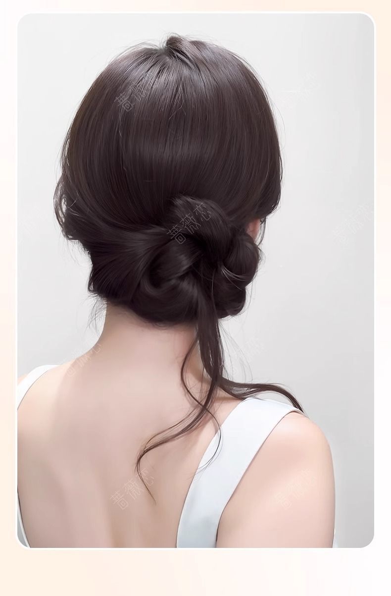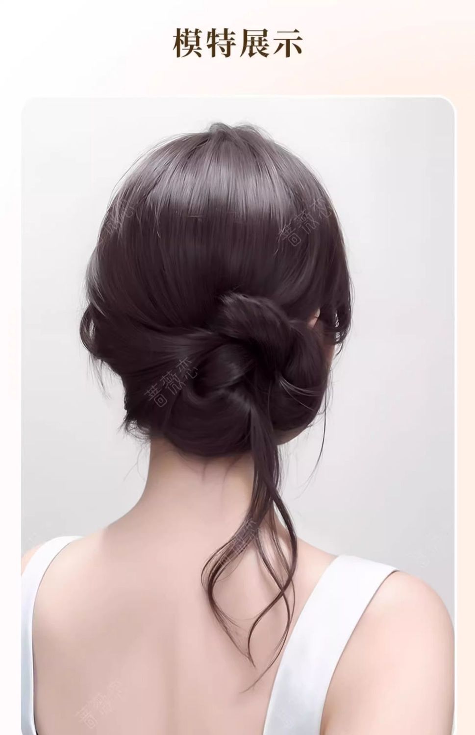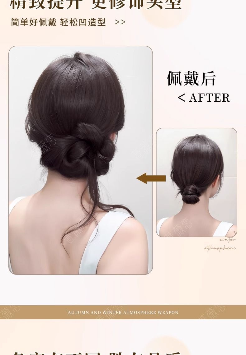 女性用ボールヘッドウィッグ、低結び雰囲気、つぼみヘアアーティファクト、ふわふわ後頭部ナチュラルウィッグヘアバッグ