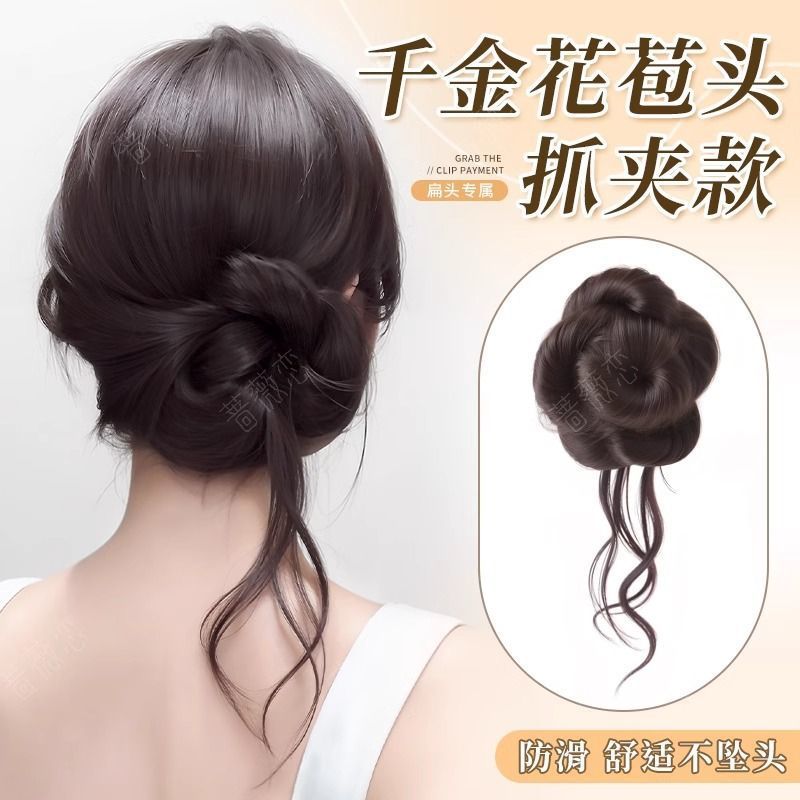 低扎丸子头假发抓夹女盘发发包自然仿真花苞头蓬松增发量假发发圈