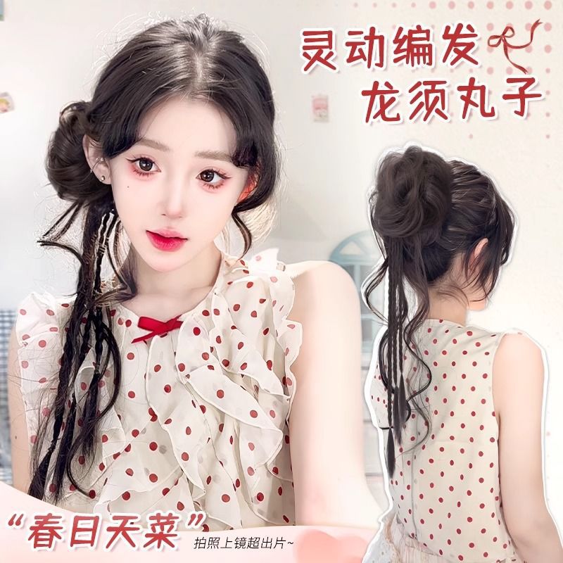 龙须丸子头假发女流苏侧盘发花苞头明星同款发髻自然蓬松假发发圈