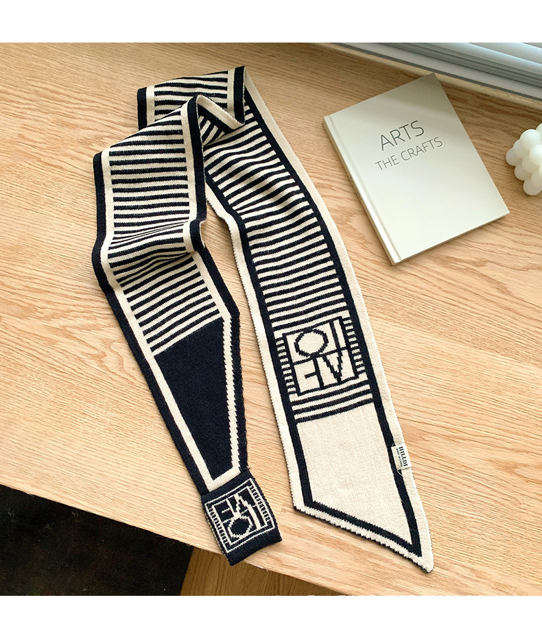 スカーフ女性の冬の新しい黒と白のクラシックストライプ多用途韓国スタイル装飾気質スカーフ怠惰な首の保護