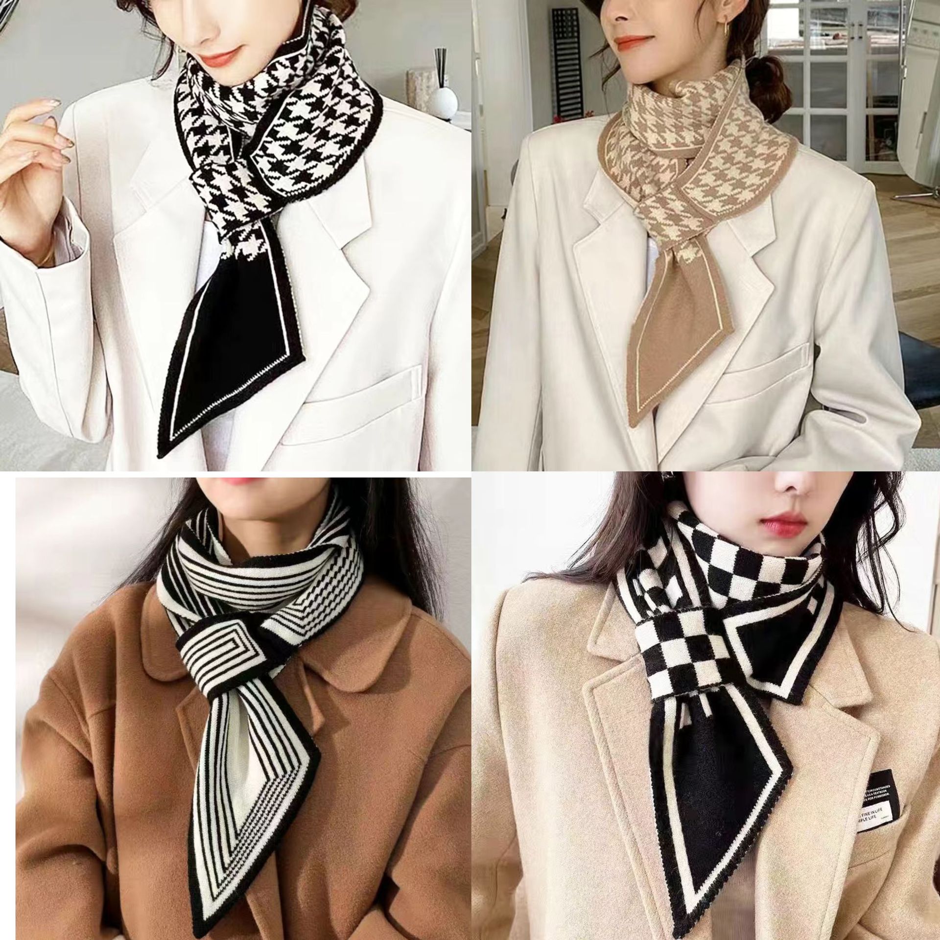 首の小さいマフラーの女性の2024の新型の秋冬の春と秋の秋の千鳥の格の気質は首の首の首のカバーの怠け者のマフラーを合わせます。