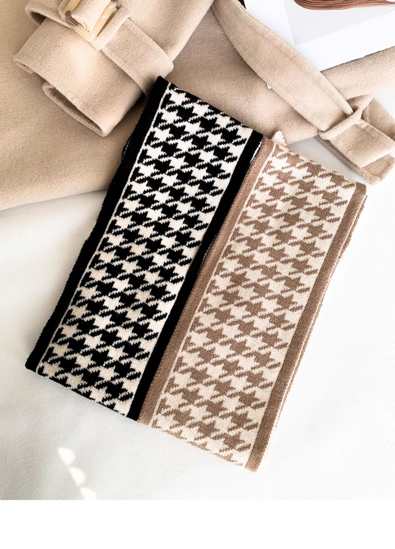 围巾女冬季韩版多款鹿毛保暖风潮学院风针织千鸟格围脖百搭围