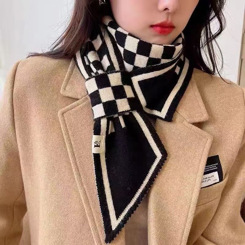 冬の韓国版百合保温首飾り格子怠け者交差小マフラーニットスカーフ高級感女性