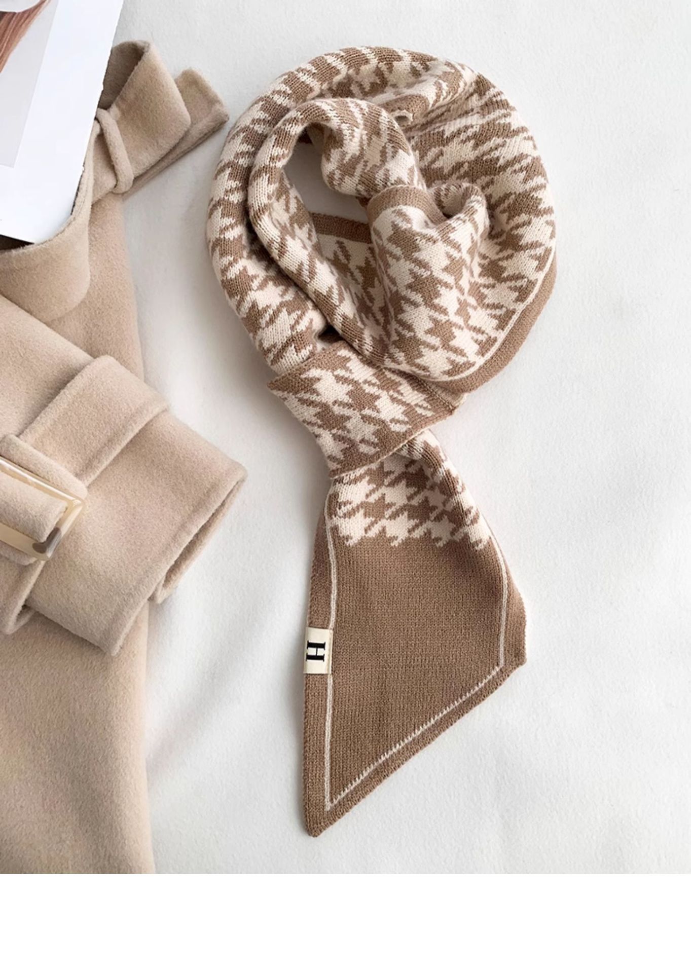 韩版千鸟格围巾女款秋冬新款氛围感懒人小围脖高级感百搭保暖领巾
