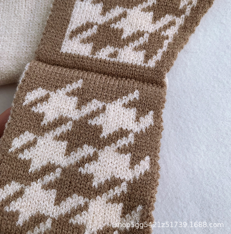 围巾女冬季韩版鹿毛绒交叉保暖风潮学院风针织千鸟格围脖百搭围巾