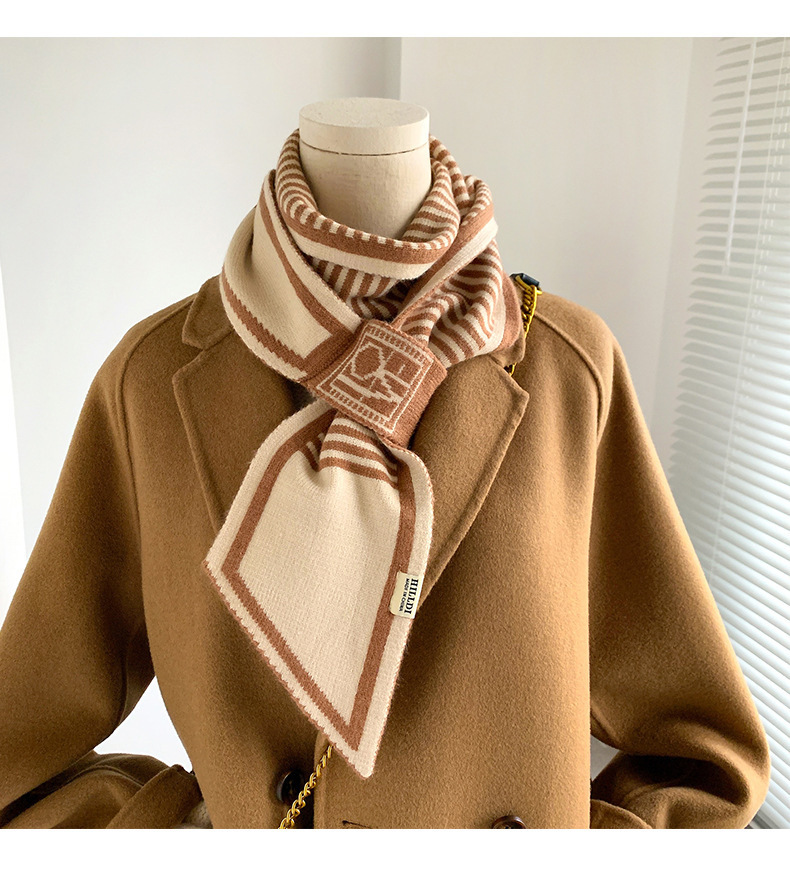 新款秋冬高档保暖护颈小围脖气质百搭双面针织毛线小围巾长领巾