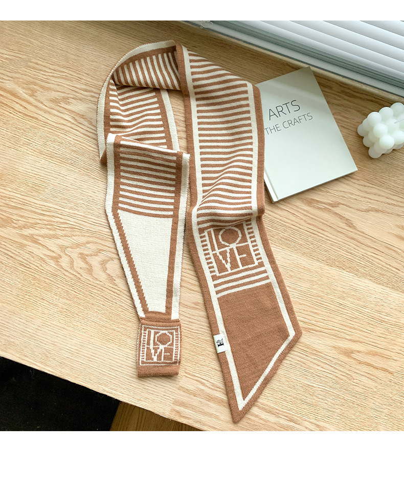 交叉围巾女士韩国小耳朵护颈窄围脖小长条字母豹纹针织小围巾批发