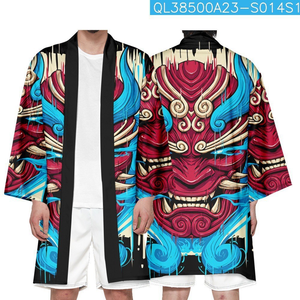 マントの武士の新商品の国潮の長いタイプの着物の日本の7分の袖の竜のゆったりしている2025竜のトーテムの道服のカーディガンの鬼
