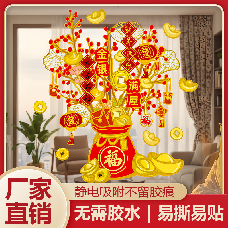 2026新年窗贴窗花静电贴大吉大利发财树