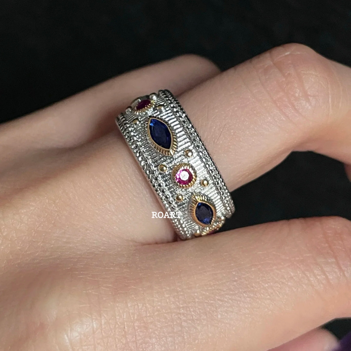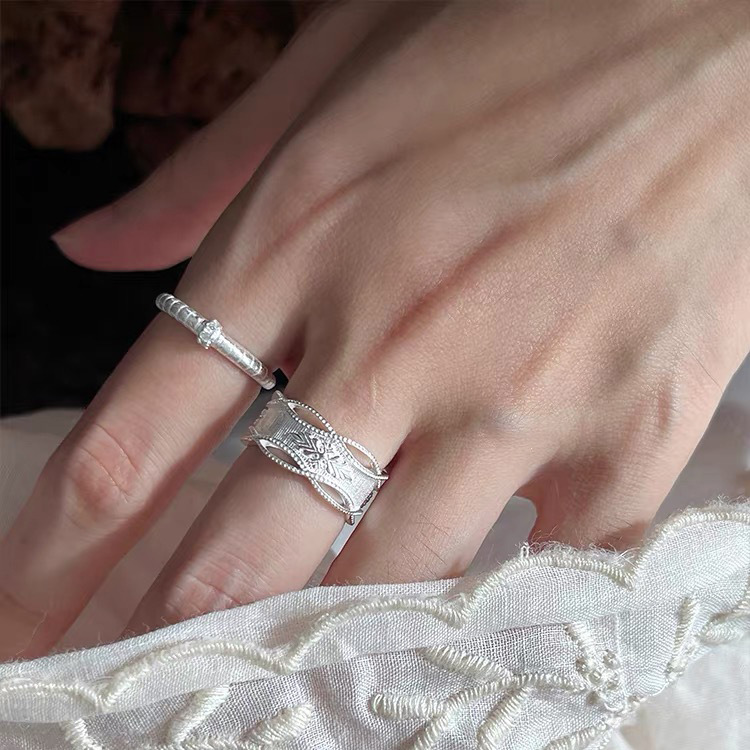 新中式古法银色戒指女小众设计宽版开口戒复古百搭指环