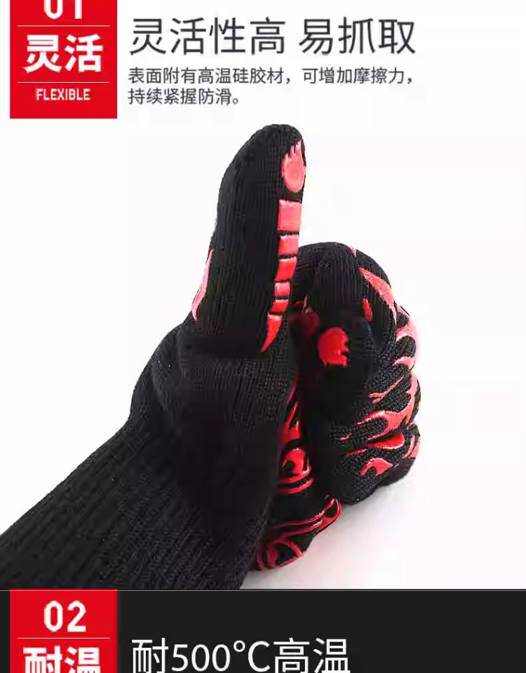 耐高温防火手袋五指霊断熱防熱厚手飲食土鍋焙煎オーブン焼き暖炉専用