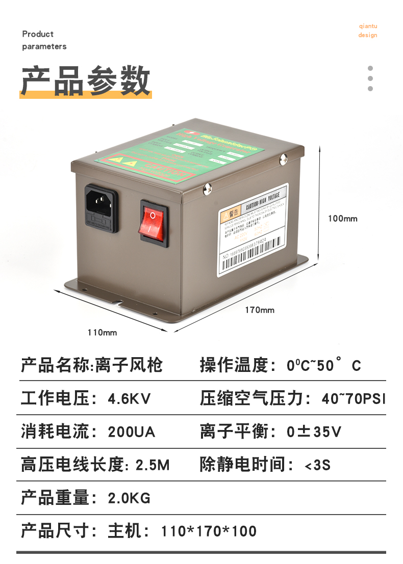 イオンエアガン吹きほこり除去静電除去器工業除塵プラスチックは表面静電イオンを迅速に除去する