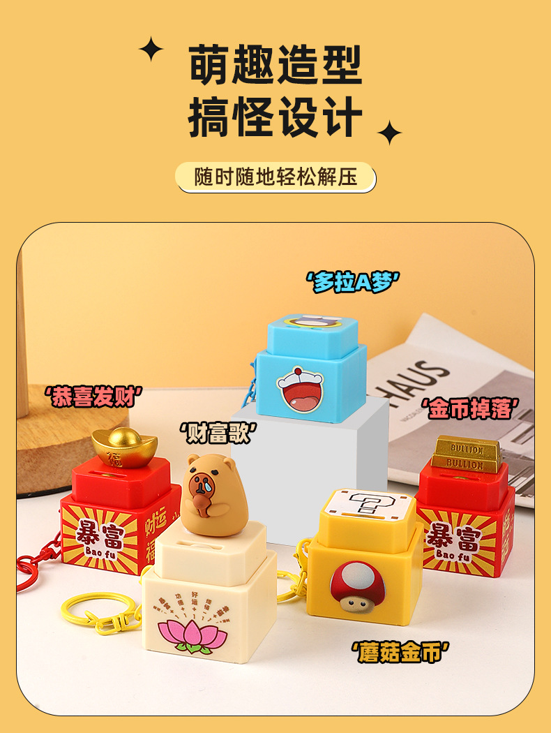 2026新年喜庆爆金币解压发声按键金元宝钥匙扣书包挂件抓娃机礼品
