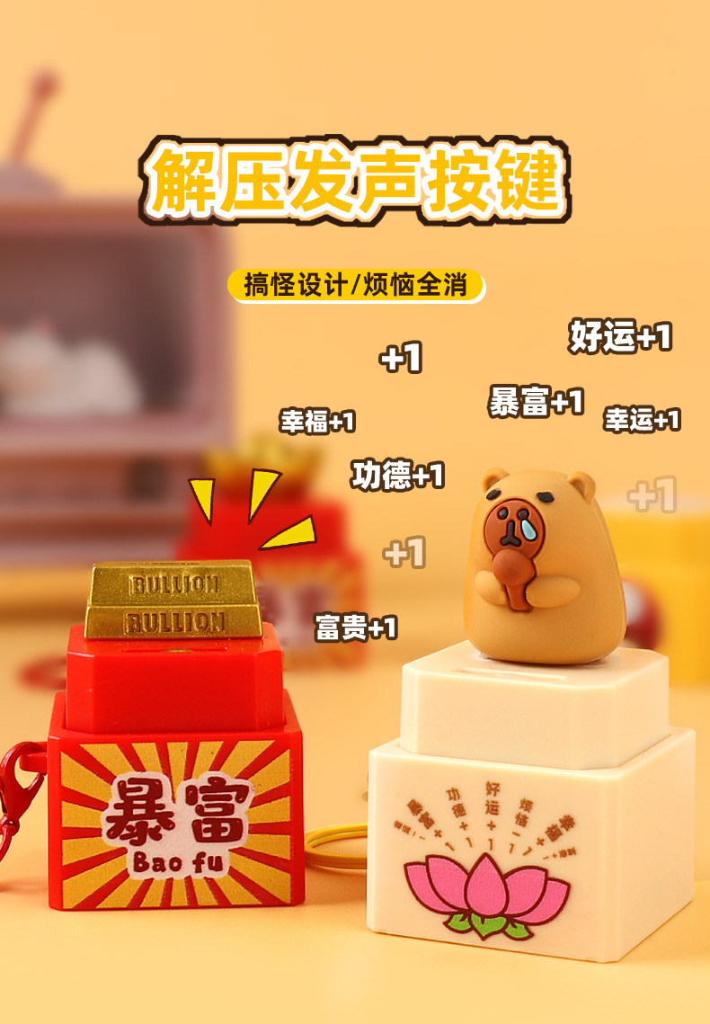 创意高颜值木鱼按键功德积攒器带音效钥匙扣挂件解压神器玩具