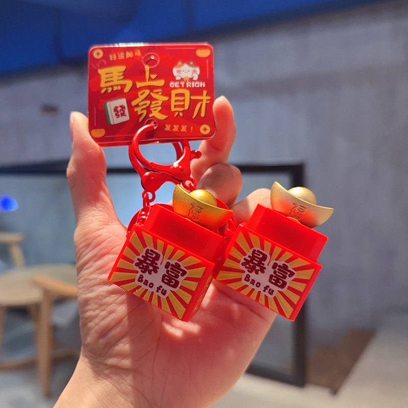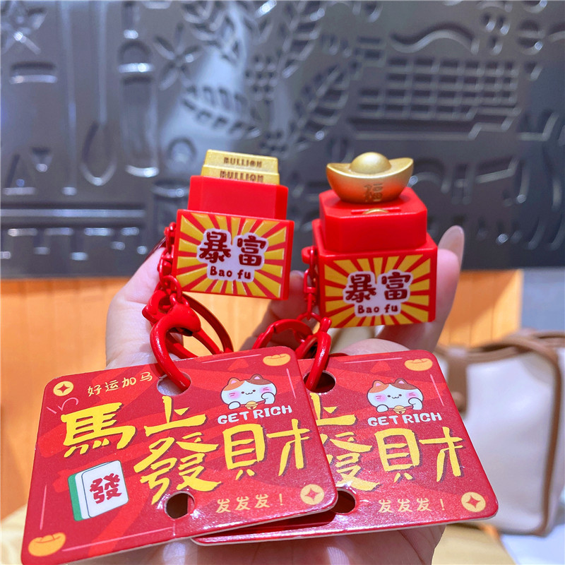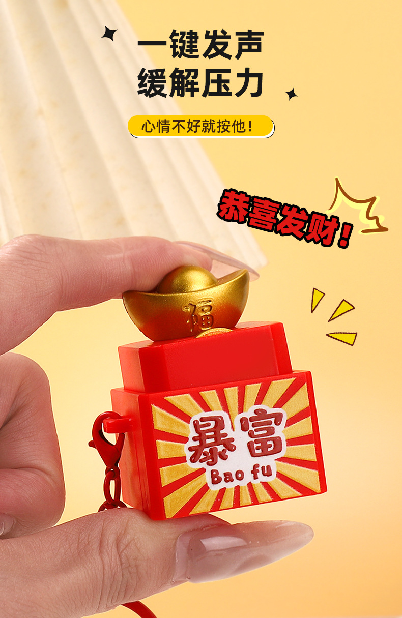 网红喜庆暴富治愈解压发声按键金条金元宝钥匙扣挂件情侣包包挂饰