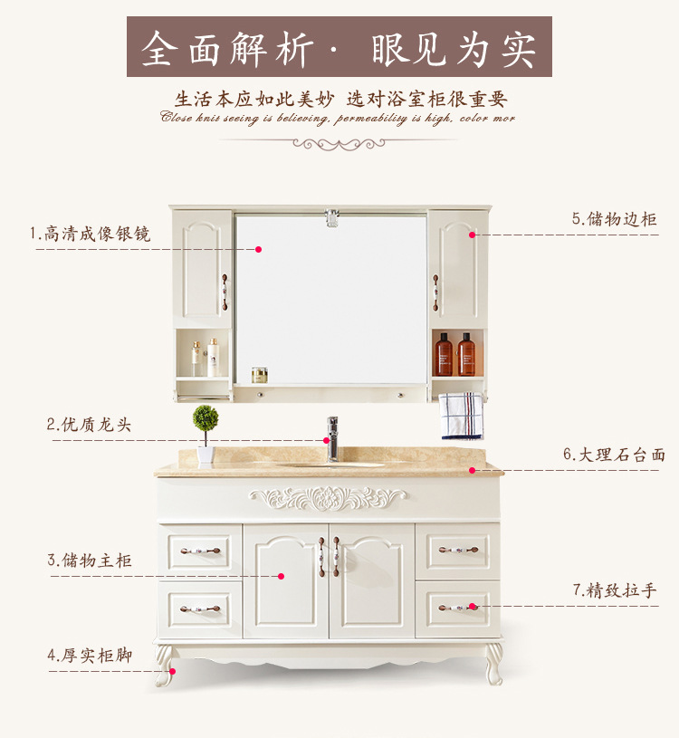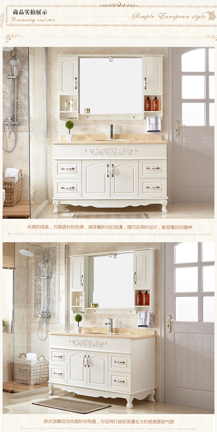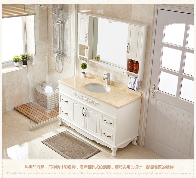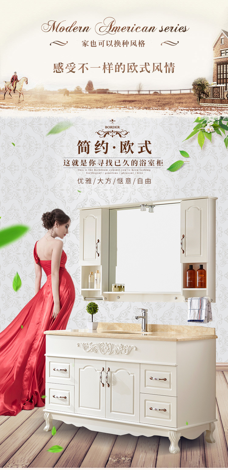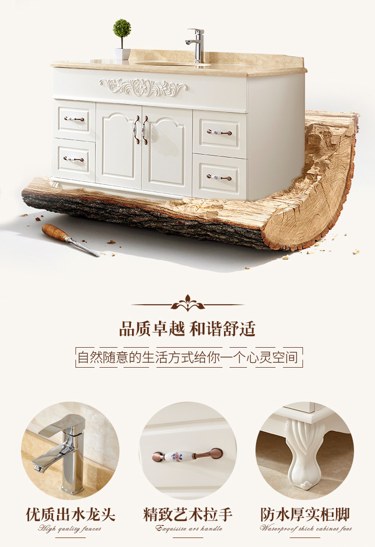 欧式橡木浴室柜组合落地洗漱台落地卫生间洗手洗脸盆镜柜大理石