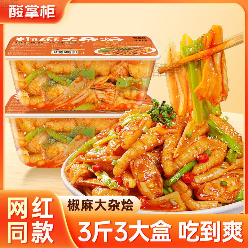 酸っぱい番頭の椒麻の脆いハロゲンの大雑煮520gの箱の中に骨のない鶏の爪の功菜が酸っぱくて辛いです。