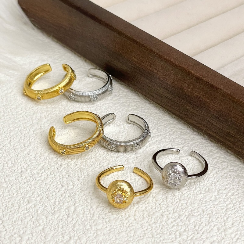 シルバーカラーリングジルコンオープンリングリングセット女性冷たい风気质カップルリングファッション个性食指戒潮