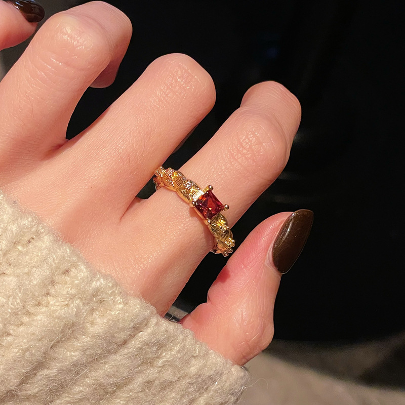 赤い本の同じタイプの線引き指輪の女性insの大衆の気質は簡単で高い顔の値を入れてカップルの指輪を入れて女子に送ります。